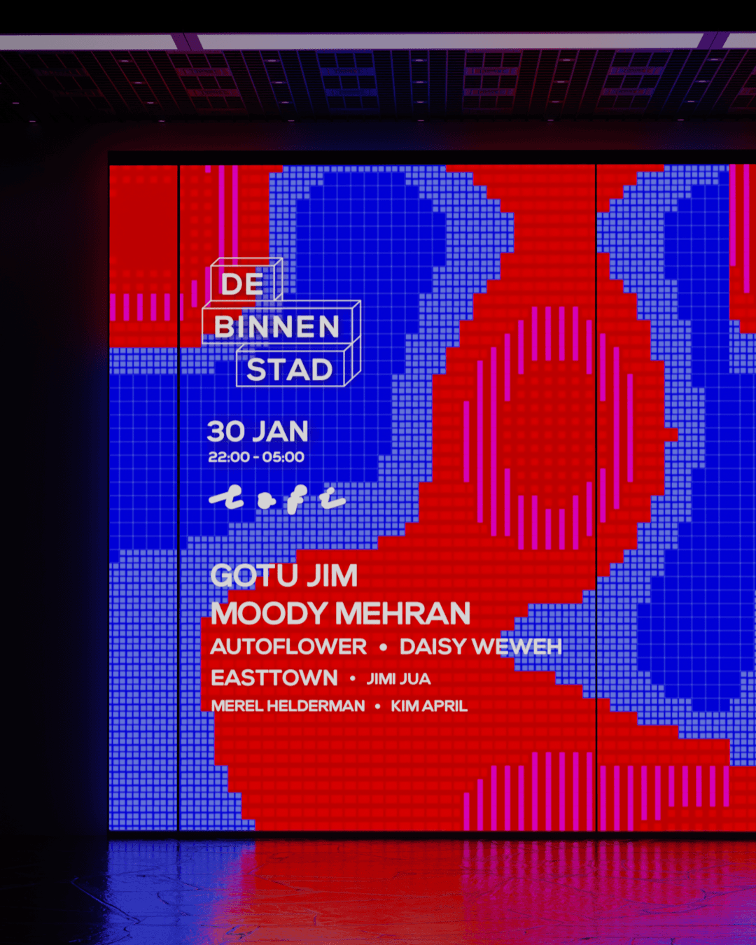De Binnenstad (Dutch for “the inner city”)is a fast growing festival located in Amsterdam. Their concept is to bring all kinds of elements that can be found at a festival to the club in order to offer the ultimate experience. Delivering on this promise, De Binnenstad needed a brand identity system that embodied their values. The system is extended through custom 3D renders, enriching the visual language with a strong sense of immersion.