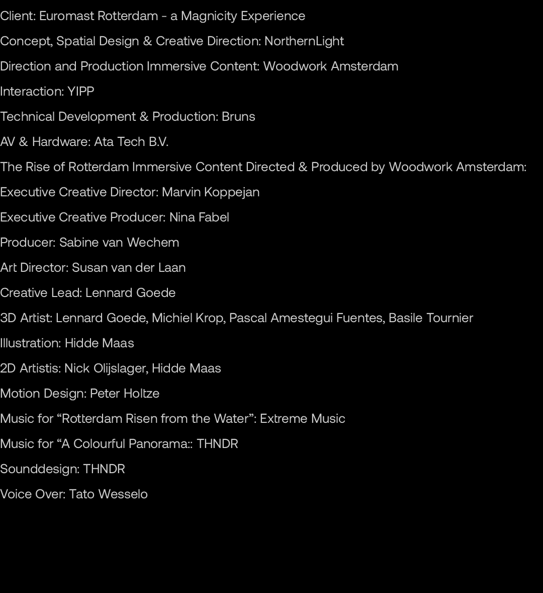 Art Direction for the Euromast immersive experience. Shaping the visual language and creative foundation of two new films that introduce visitors to the story of Rotterdam. Working closely with Woodwork and guiding the creative team, I helped define the tone, atmosphere, script, and overarching aesthetic, from the historically rooted narrative of the city's origins to the vibrant, celebratory portrait of Rotterdam today.